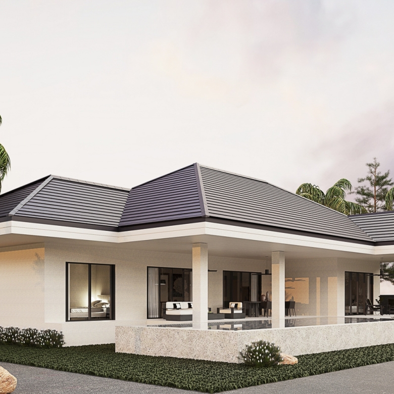 Explore this brand new 3-bedroom pool villa for sale at Chada Homes Hua Hin. Enjoy modern luxury, a private pool, and a prime location near beaches and attractions.