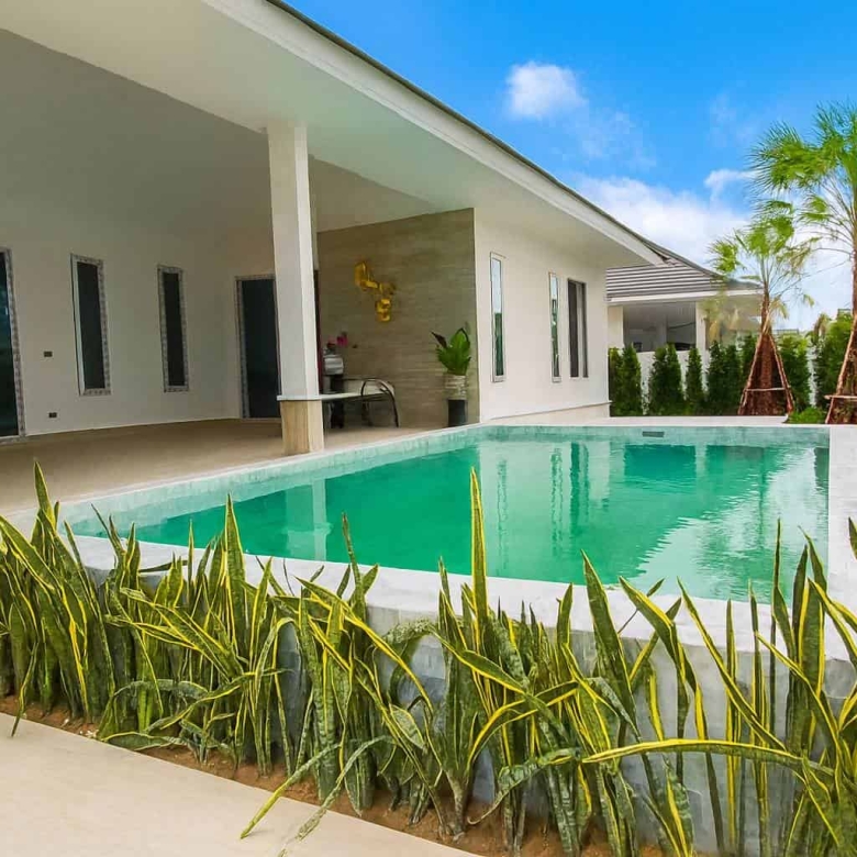 Luxury Pool Villa M43 for sale at The CoCo Hua Hin 88. Spacious 3-bed, 3-bath with European kitchen, saltwater pool, near beach, malls & golf.