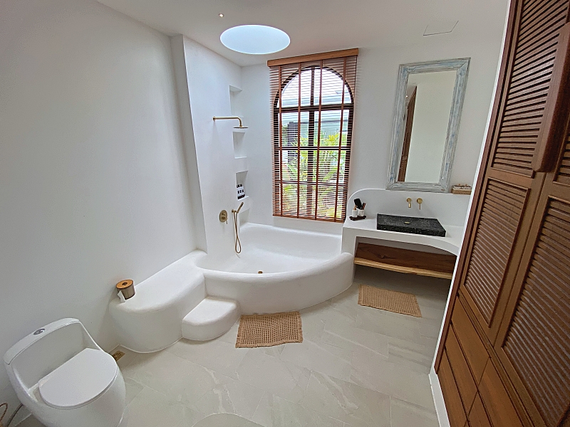 The property includes a separate 80 sqm downstairs apartment, ideal for guests or staff. Modern infrastructure ensures comfort with 10 air conditioners, 8 security cameras, a 10 kW solar panel system, and premium thatch roofing. This luxury pool villa near Black Mountain Golf Course harmonizes elegance, comfort, and stunning natural vistas.