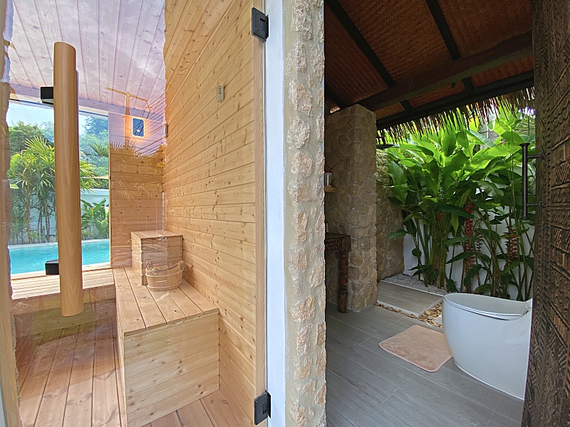 Designed in a sophisticated Colonial Balinese style, the villa blends tropical charm with European elegance. It sits on 1,444 sqm of land with 500 sqm of living space, featuring breathtaking mountain and river views. The outdoor area is a private resort with a 13×4 meter saltwater pool, integrated Jacuzzi, sauna, and a fitness area.