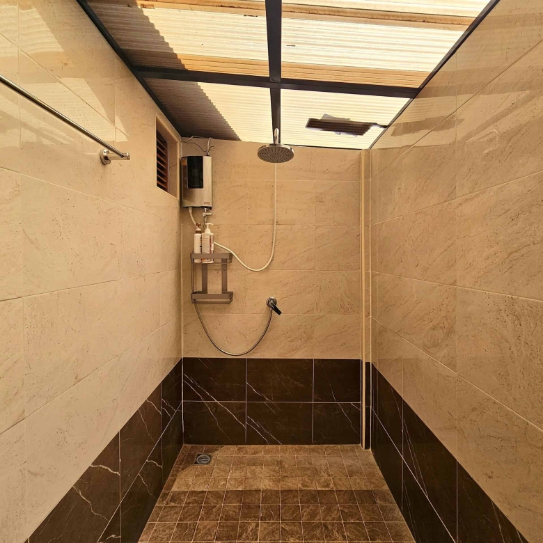Spanning a generous land area of 736 sqm with a comfortable living space of 140 sqm, this villa comes with a full freehold title deed. The partly furnished home features three spacious bedrooms, split between a main Thai-style house and a separate guest house, along with three bathrooms and a fully equipped European kitchen. Its open-plan living areas are designed for both functionality and modern convenience, ensuring a comfortable lifestyle.