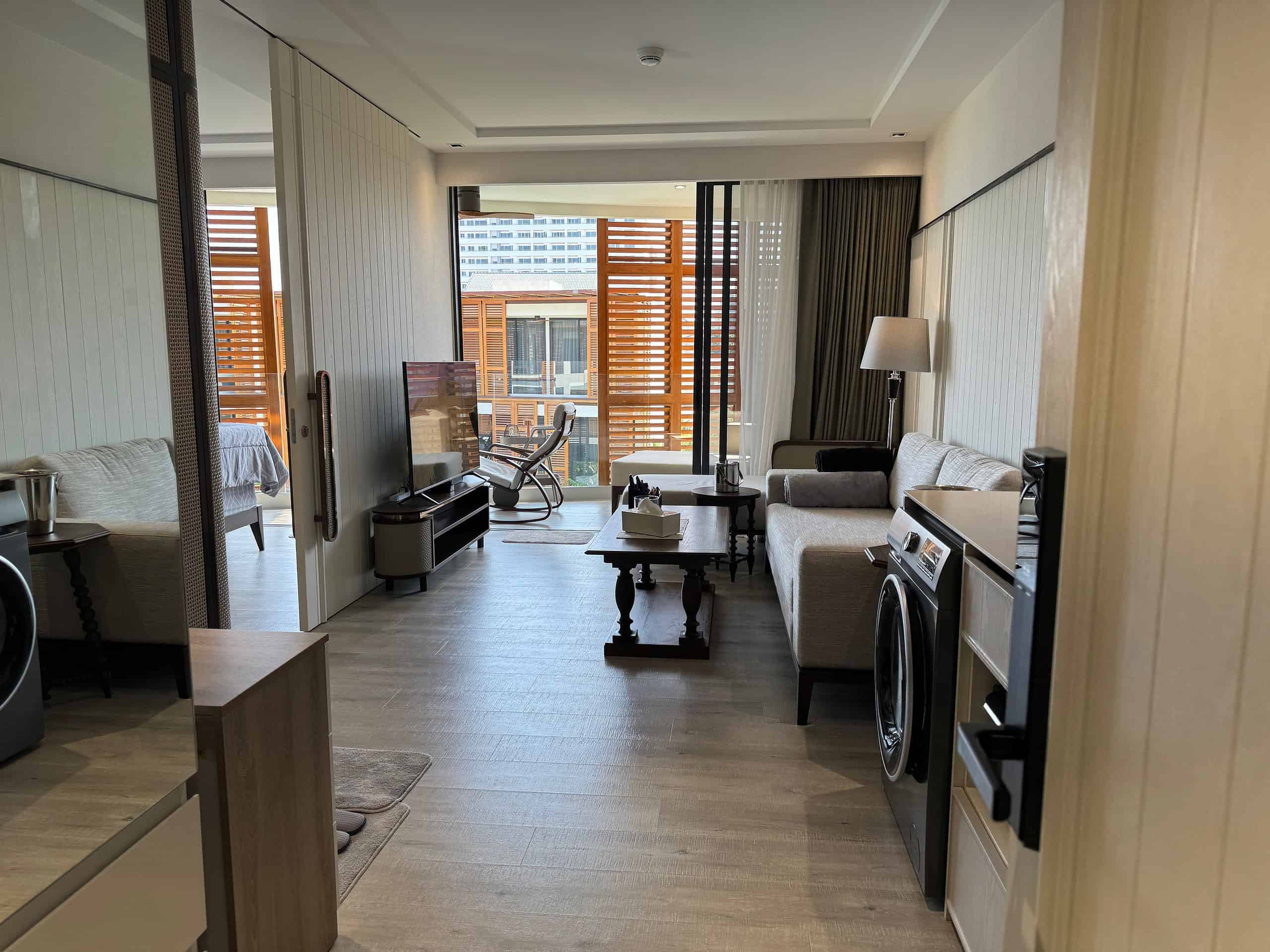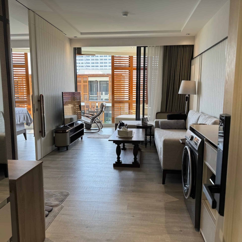 This barely-used condo is fully furnished and includes a fiber optic internet connection. Enjoy the serene lifestyle of Hua Hin, a popular beach resort town known for its sandy beaches and vibrant night markets. This is a complete luxury living package.
